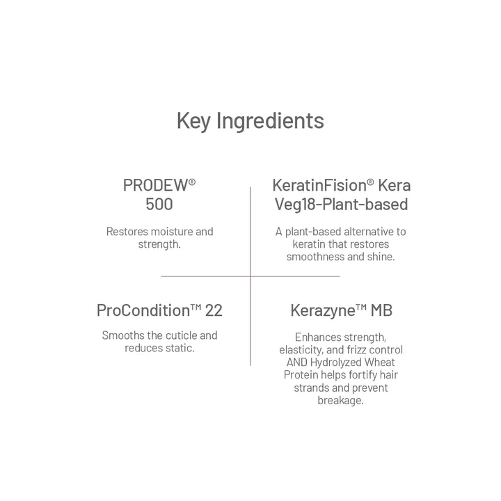 - Kerazyne™ MB -enhances strength, elasticity, and frizz control AND Hydrolyzed Wheat Protein helps fortify hair strands and prevent breakage.